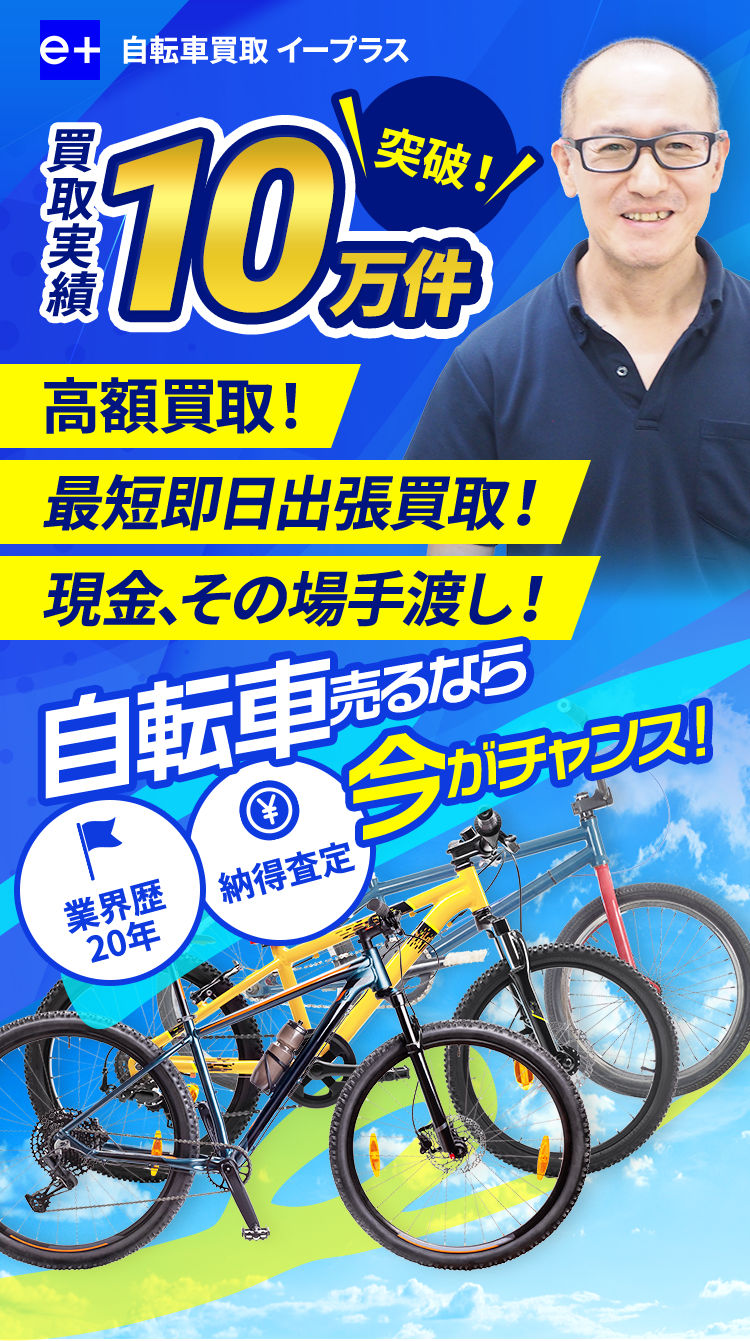 自転車 買取 で検索した4社程見積もりをお願いしたのですが、この自転車買取イープラスさんが一番丁寧にやり取りをして下さり、お値段のレンジも絞ってくれました。さらには出張買取に来てくださった方が物腰柔らかく丁寧に見てくれる方で、状態の悪い箇所をきちんと説明して下さいました。